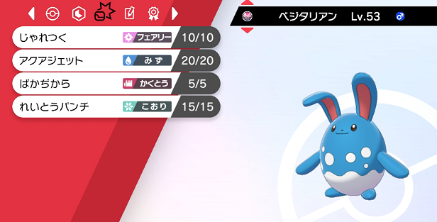 ただし「ぜったいれいど」のPPは上げておくべきでした。それと、水統一に水タイプの攻撃はまず来ないので、特性は「ちょすい」じゃない方が良かったです。