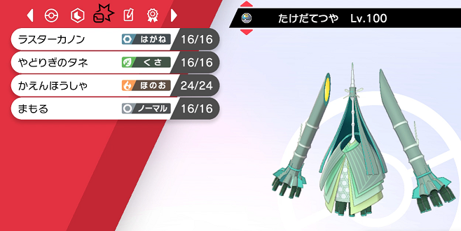 タイプ的にはテッカグヤなどと組ませて、テッカグヤの前にナットレイが出てきたときなどに交代で出したいですが、受け出しするにはあまりにも耐久力が貧弱です。(だからタスキを持たせてます)