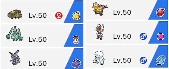 5月にランクバトルで戦ったパーティ。まだ構成考え中です。(ポケモン剣盾)