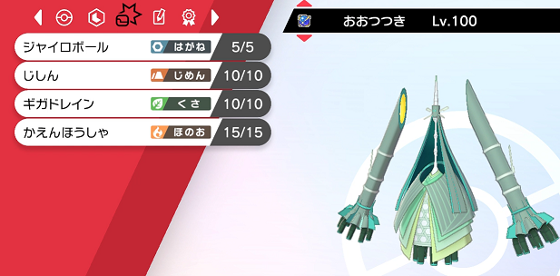 そして、たまたまゲットしていた色違いギガイアスが、本気で考えたこのガチパに入って来たのは嬉しいです。