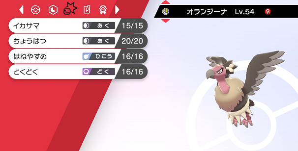 タイプ一致で使える「イカサマ」、中くらいの素早さから変化技をけん制できる「ちょうはつ」、いわずもがなの「どくどく」、「はねやすめ」。