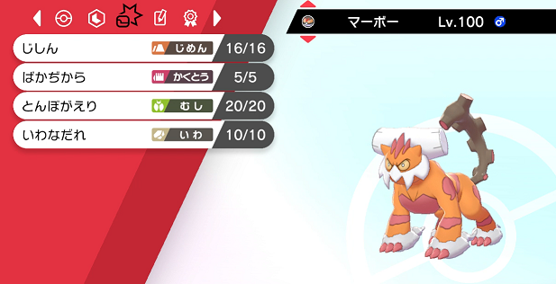 最初に出してカバルドンが出てきたら、とりあえず「ちょうはつ」しておけば良さそうです。カバルドンから岩攻撃が飛んできたことは今のところありません。最近のカバルドンは攻撃技が地面しか無いことが多いです。(それでも「ステルスロック」→「ふきとばし」「あくび」を狙って飛行統一に出て来ます。飛行タイプにステロはとても痛いので)