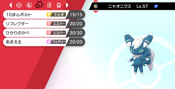 シンプルで優秀なサポート役です。攻撃技が電気なのは、エスパーだと悪タイプが来た時に交代もできず、どうしようもなくなるのからです。