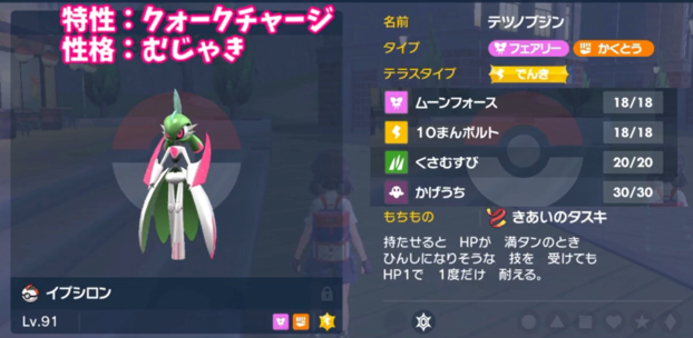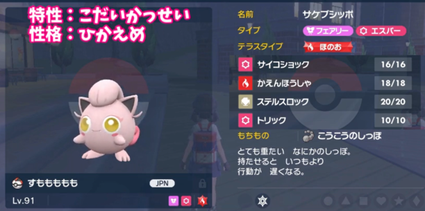 こっちはフェアリー統一なのでディンルーなども来にくく、来たとしてもフェアリーを警戒されてテラスタルされやすいです。