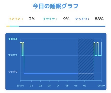 昼間に1時間半以上の計測をしているので、夜は7時間以下の睡眠で100点満点を取ることができます。