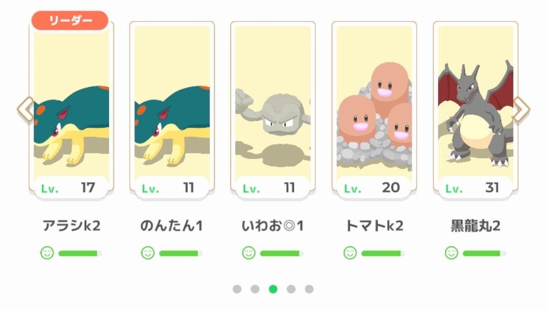 料理の内容を考えなければ、頑張ってレベル30のリザードンを用意して、『リザードン1匹&ヒノアラシ系4匹』みたいな構成も強いと思います。