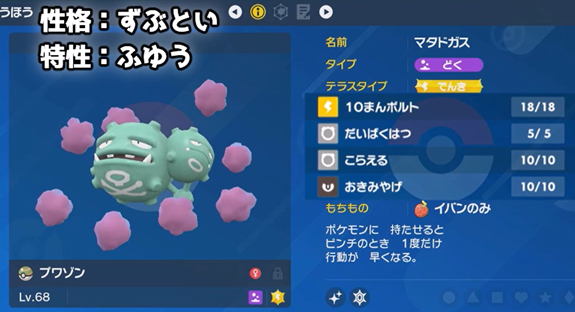 しかし毒統一で地面技が効かないポケモンは貴重ですし、「イバンの実」を持って「こらえる」「みちづれ」ができるのは面白いです。
