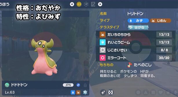 トリトドンは物理耐久はさほどでもなく、火力もなく、素早さも遅いのでどうしても相手できるポケモンが限られてきます。