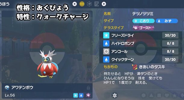 今回はたまたまコライドンとあまり当たらなかったので選出率は低め。しかし禁伝環境の水統一には、とても有用なポケモンだと思っています。