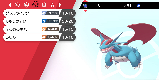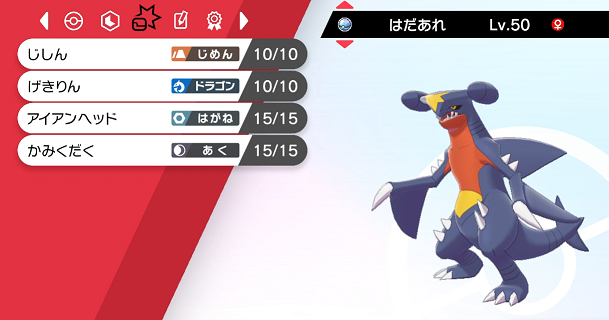 ガブリアスのタイプの地面・ドラゴンは、それぞれ飛行、フェアリーで無効化されてしまうので、タイプ統一という偏った構成で技を拘ってしまうのはちょっと使いづらかったです。