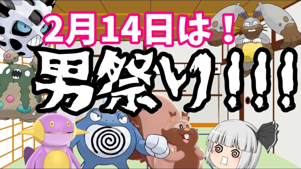 2月14日は『男祭り』!!! https://youtu.be/GRSqEbBCpjY はい、毎年恒例となってしまったポケモンのおふざけ企画。モテないポケモン達が集まって、バレンタインの日に大暴れする『男祭り』です!できればランクバトルにも進出したかったのですが、今は禁止... -